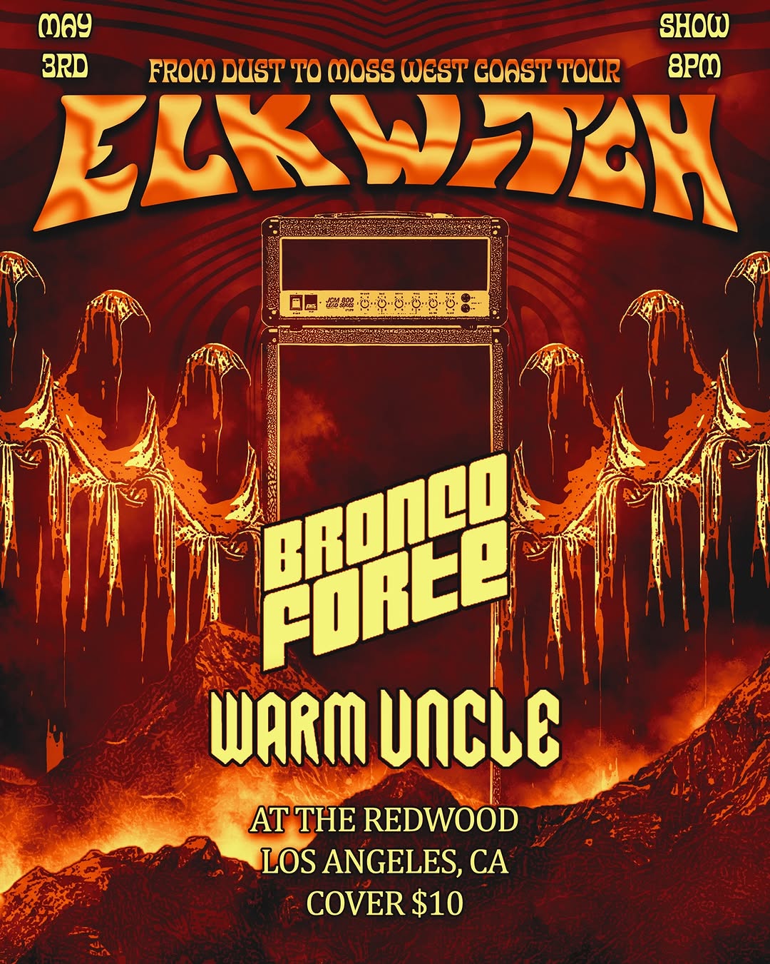 May 3 @ 8:00 pm - 11:30 pm Redwood 05/03/26 The Redwood Bar & Grill 316 W 2nd St, Los Angeles, CA, United States ELK WITCH (OR) BRONCO FORTE WARM UNCLE @ The Redwood 8PM $10 $10